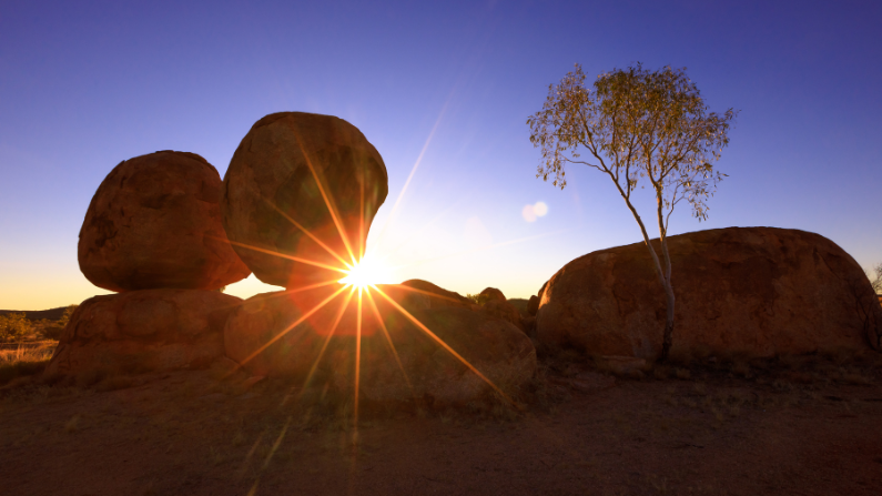 Before leaving Tennant Creek, make sure to rise early and visit Karlu Karlu, also known as the Devils Marbles. Located about an hour south of Tennant Creek, this sacred Aboriginal site features hundreds of massive granite boulders that create an otherworldly landscape. Arriving at sunrise, you’ll witness the boulders bathed in the soft, golden light of dawn—a truly magical experience that reflects the spiritual significance of this place.